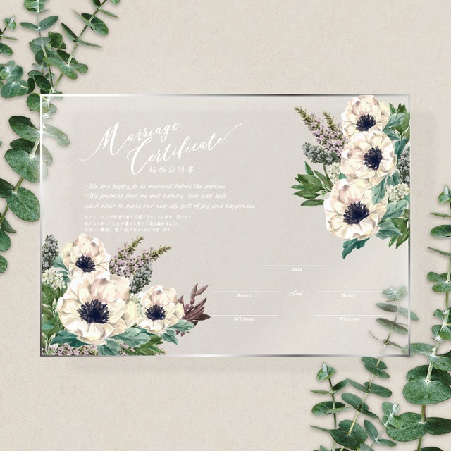 最短5日発送【人前式・教会式】結婚証明書 A4サイズ 誓いの言葉 ウェディング 送料無料 アネモネ