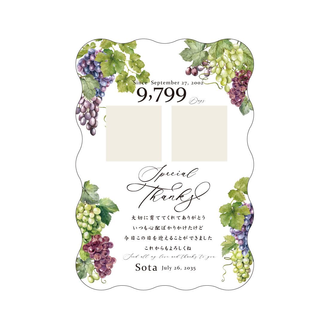 なみなみアクリルA4サイズ【子育て感謝状】写真入り 印刷会社仕上げ 両親贈呈品 ぶどう ウェディング 送料無料