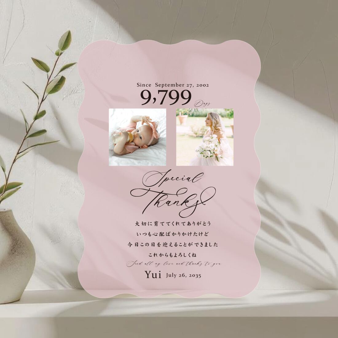 なみなみアクリルA4サイズ【子育て感謝状】写真入り 印刷会社仕上げ 両親贈呈品 シンプル ウェディング 送料無料