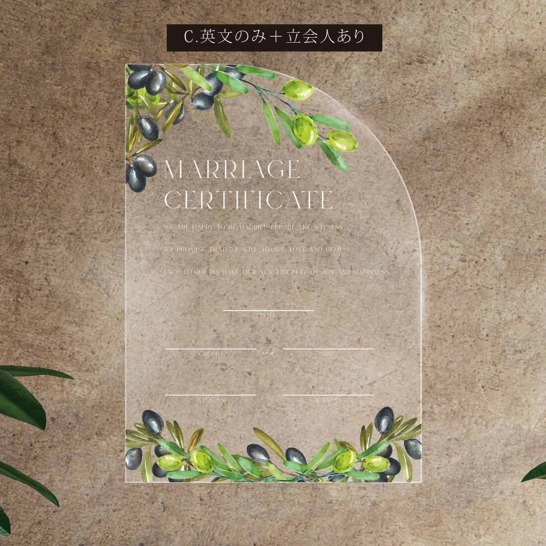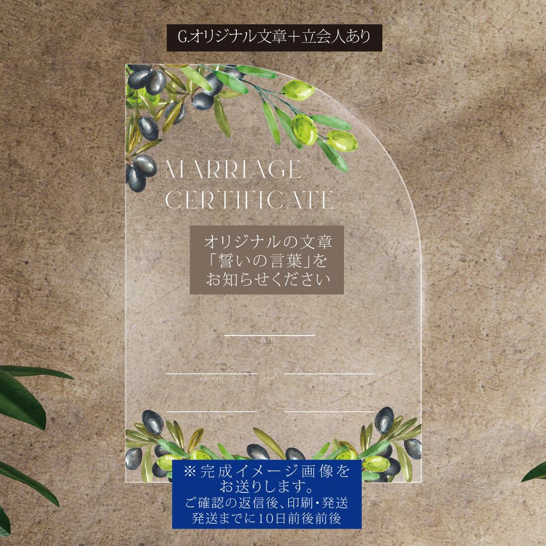 最短5日発送アクリル【人前式・教会式】結婚証明書 四分円 A4サイズ 誓いの言葉 ウェディング オリーブ 0704