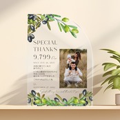 四分円アクリルA4サイズ【子育て感謝状】写真入り 印刷会社仕上げ 両親贈呈品 オリーブ ウェディング 送料無料