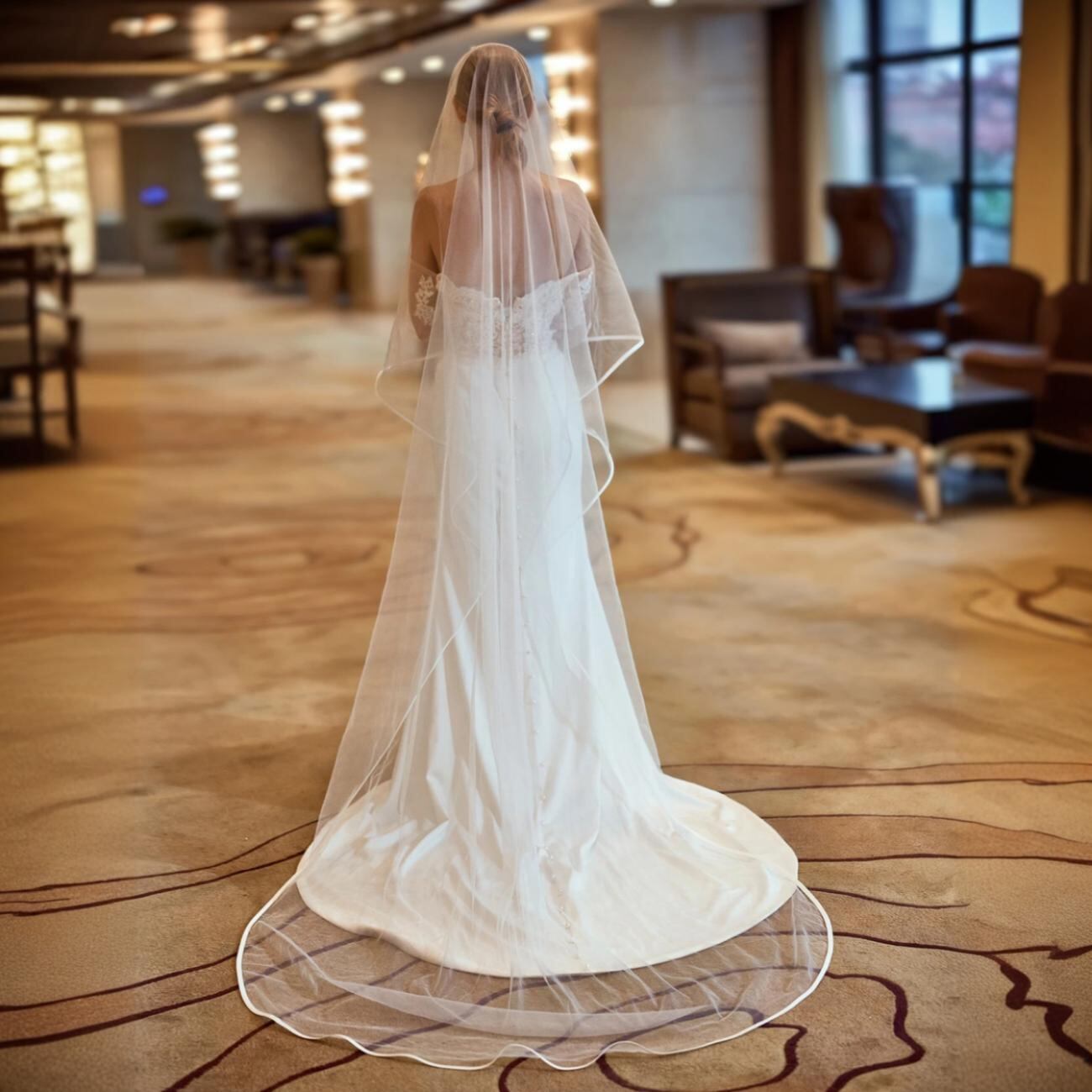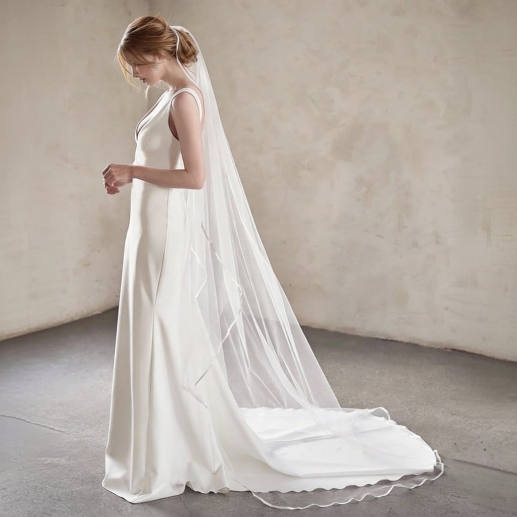 翌日発送【マリアベール】パイピングサテン 3m コーム無し ウエディングベール ロングベール ウェディング 挙式