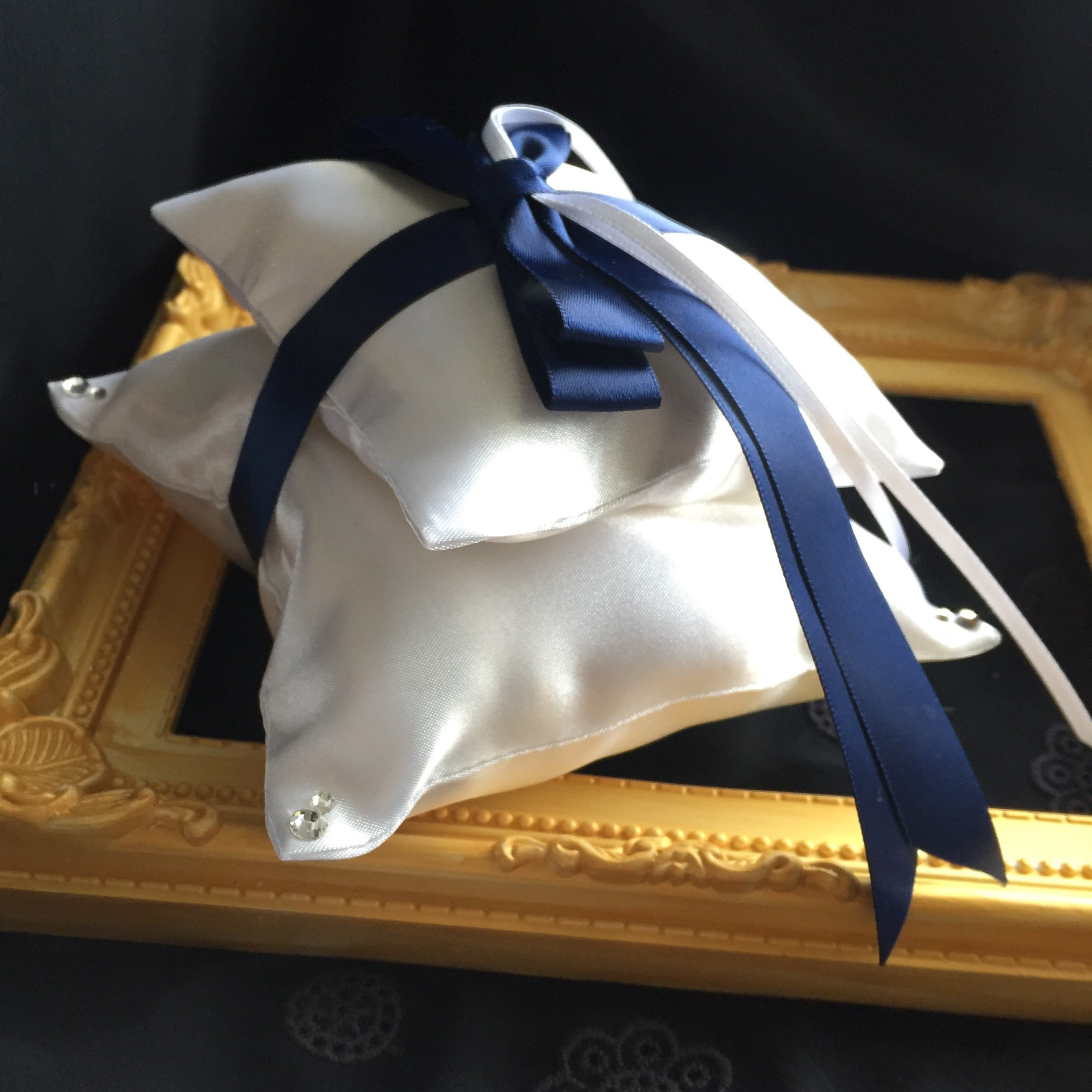 リングピロー【サムシングブルー】ロイヤルブルー 上品 サテンリボン ウェディング 結婚式