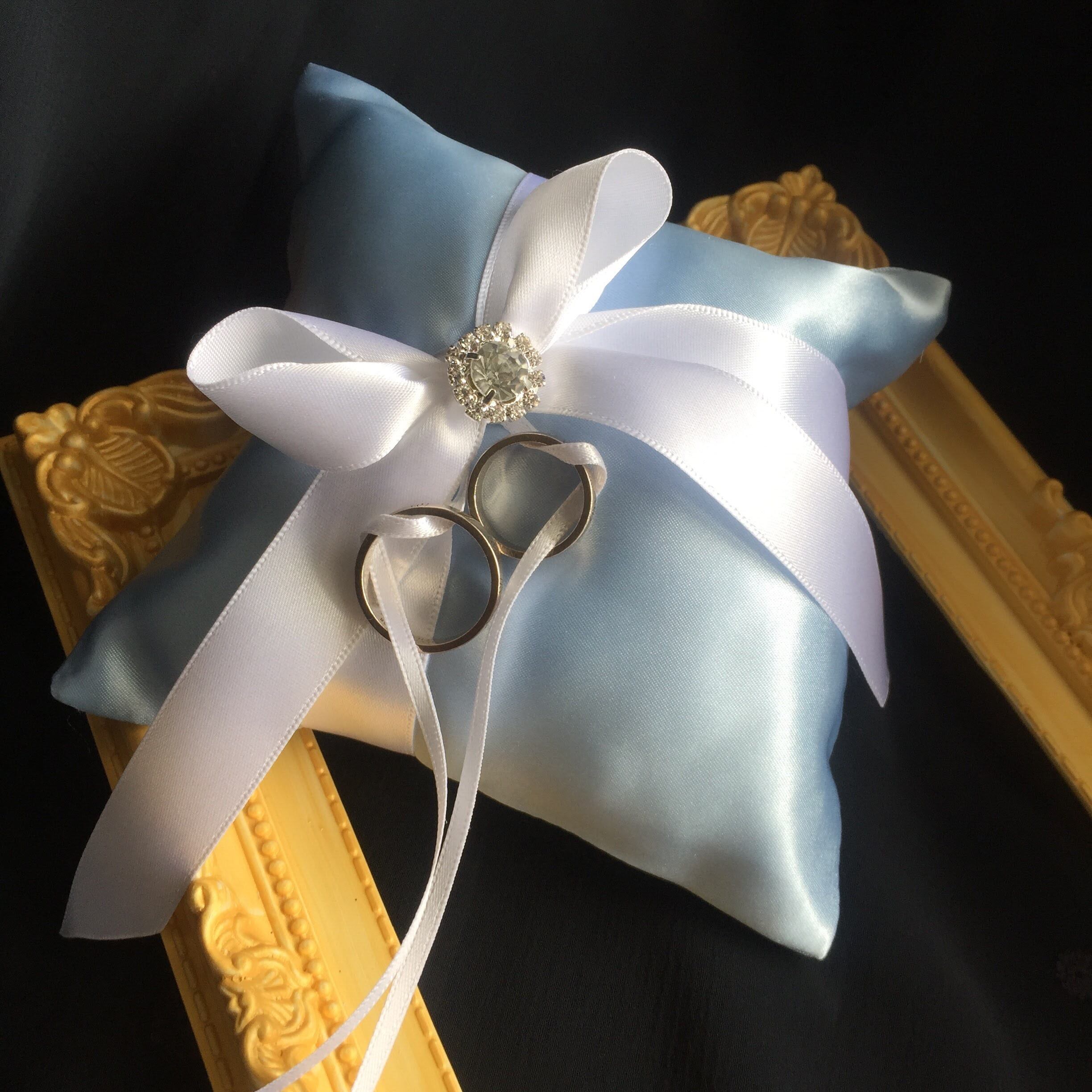 リングピロー【サムシングブルー】白リボン ビジュー ウェディング 結婚式 ブライダル