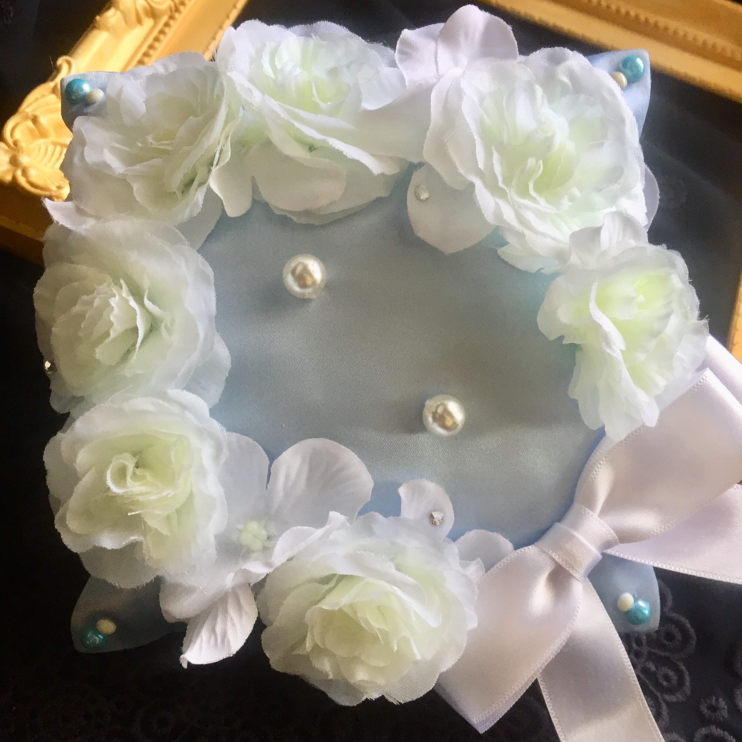 幸せを願うおまじない、サムシングブルーのリングピローです。