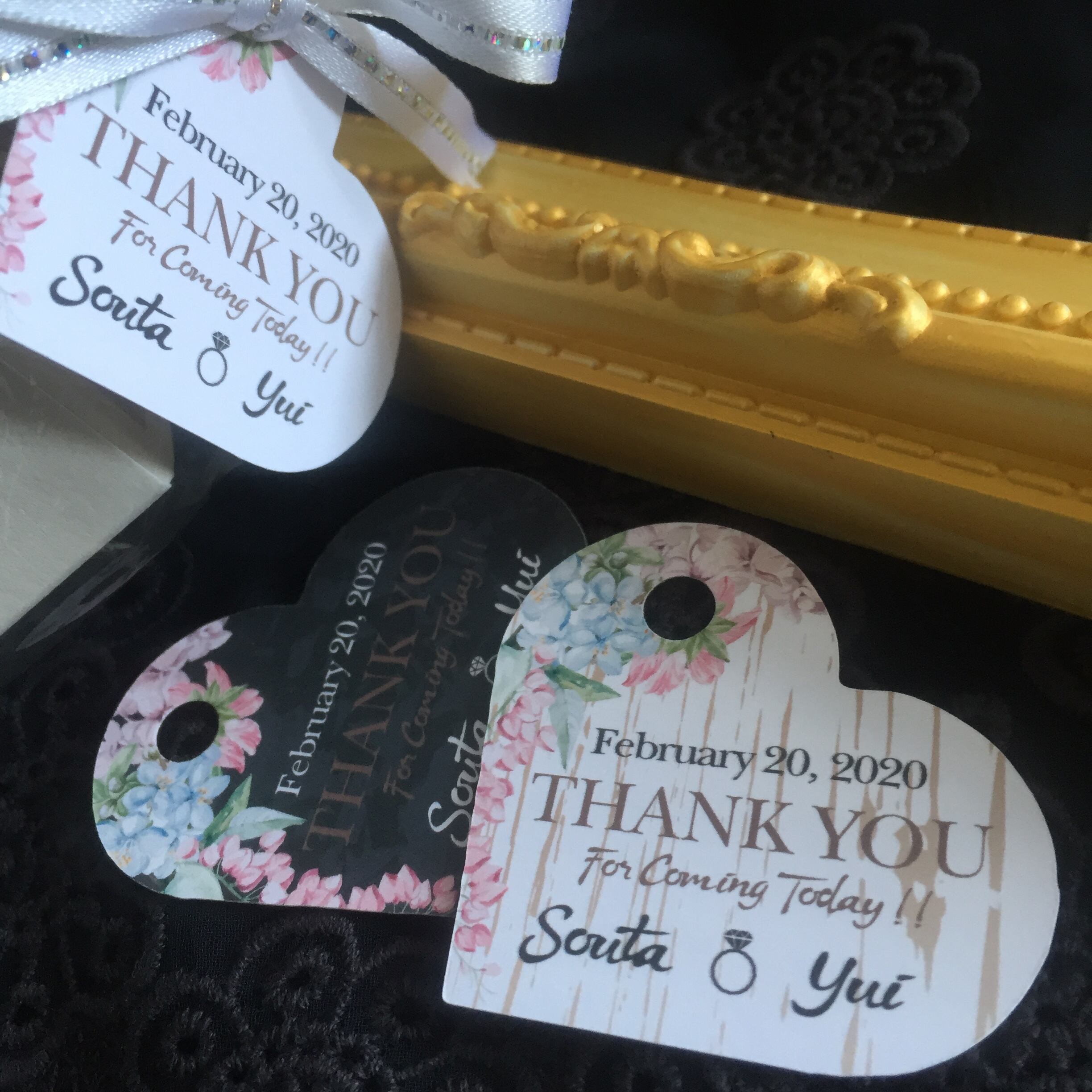 お名前と挙式日入りサンキュータグ40枚セットです。