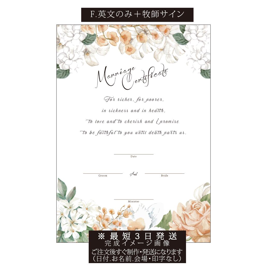 最短3日発送【人前式・教会式】結婚証明書 A4サイズ 誓いの言葉 ウェディング 送料無料 ナチュラル オレンジ