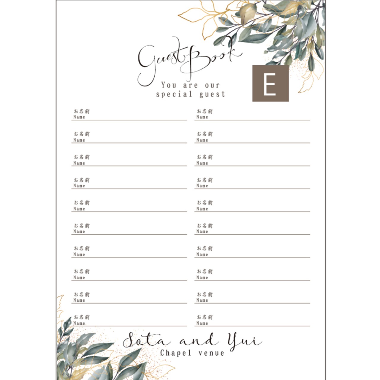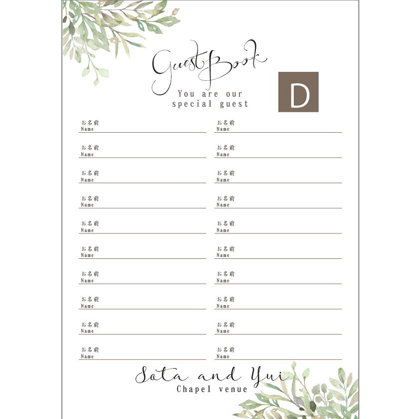 名前のみ(1枚20名×2枚=40名様分)または