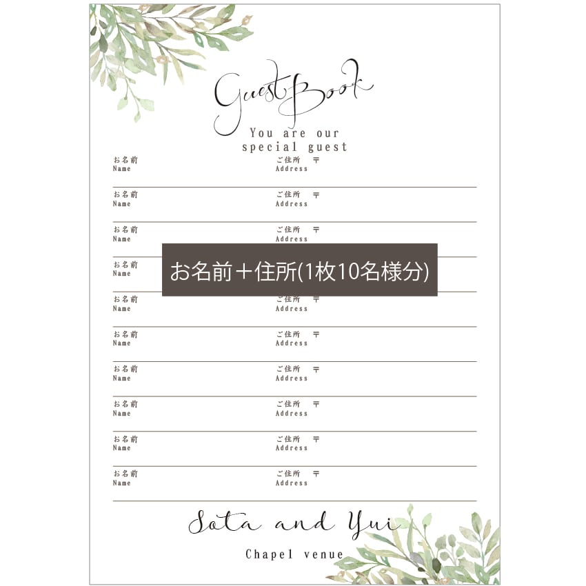 名前+住所(1枚10名×2枚=20名様分)の2種類からお選びいただけます。