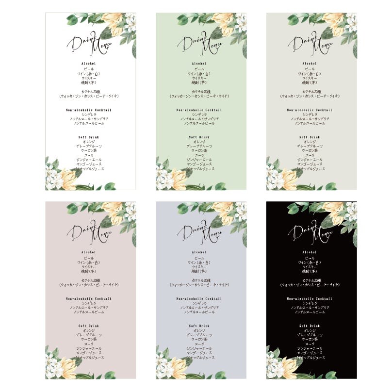 縦長【メニュー表 ドリンクメニュー】印刷会社仕上げ 筆記体 結婚式 お好きな背景 シンプル 披露宴 送料無料