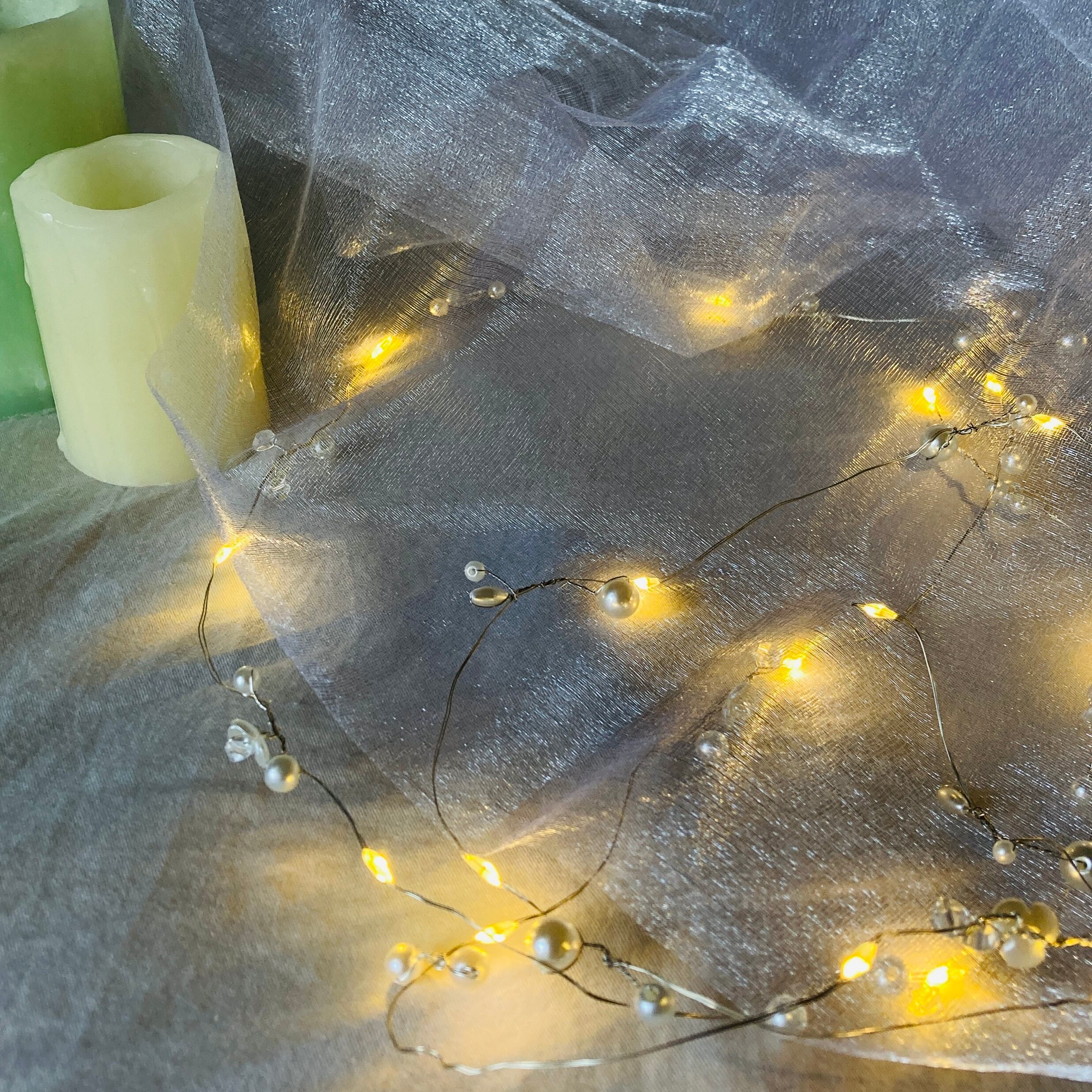 翌日発送【クリスタル オーガンジーとパール小枝ライト】装飾 受付 ウェルカム LED キラキラ 結婚式 ウェディング