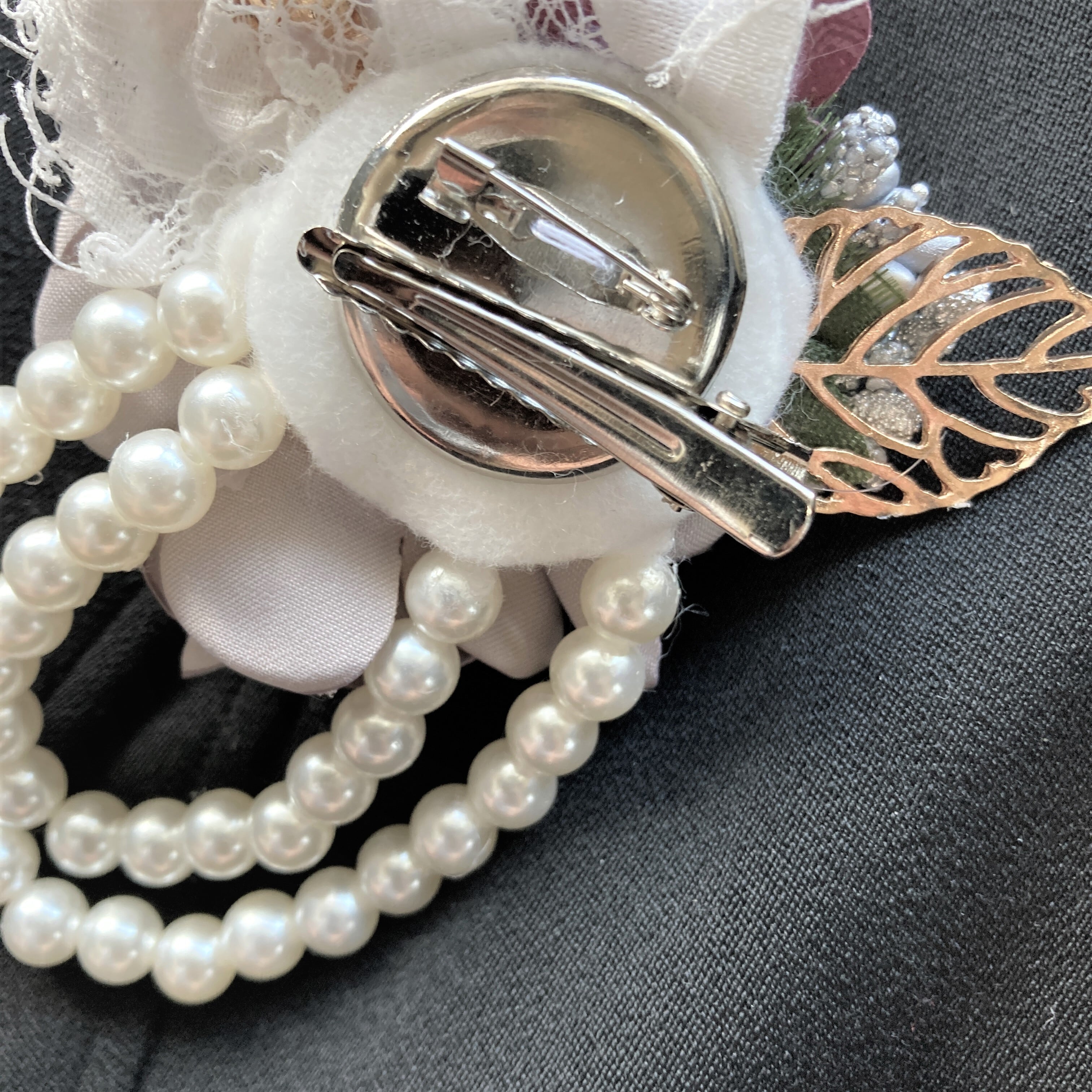 小さめ【コサージュ・ブローチ】セレモニー グレー系 モーブ パール 入学式 卒業式 発表会 結婚式 パーティー 送料無料
