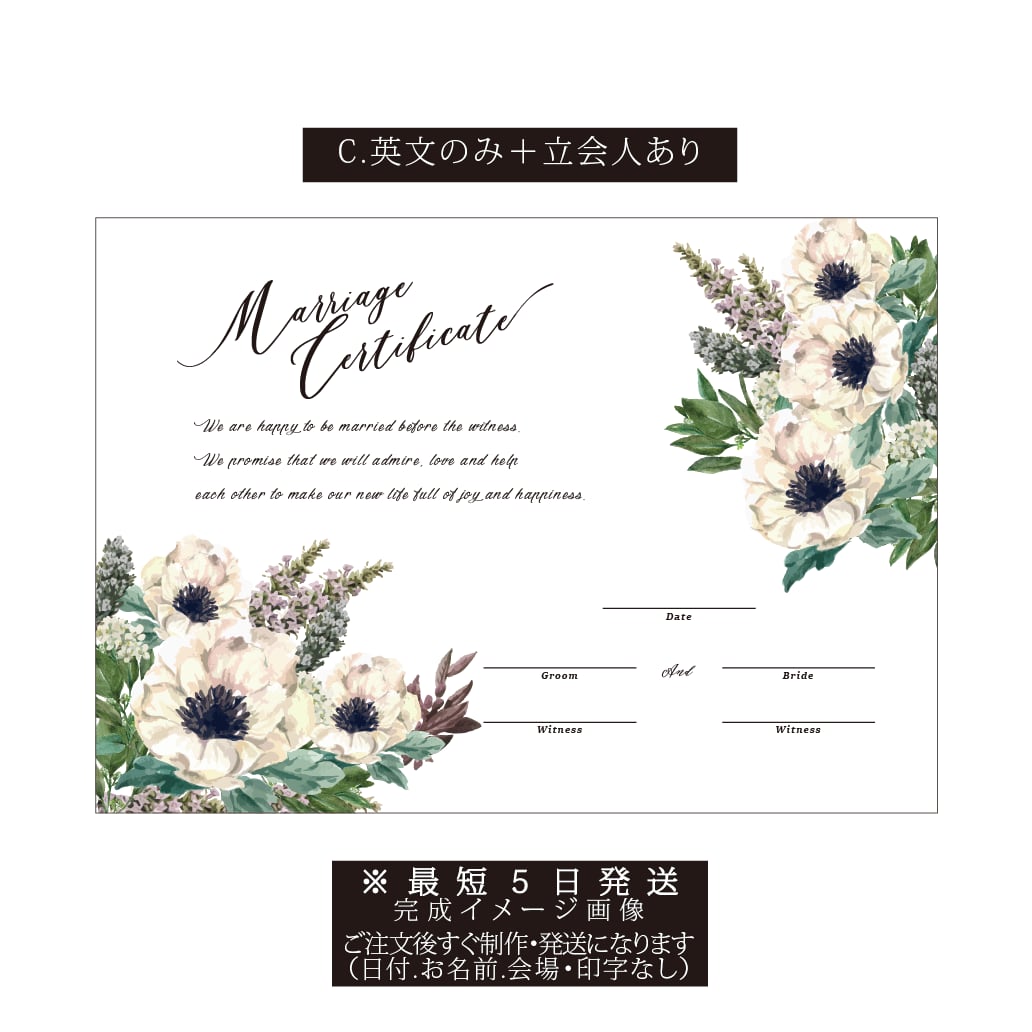 最短5日発送【人前式・教会式】結婚証明書 A4サイズ 誓いの言葉 ウェディング 送料無料 アネモネ