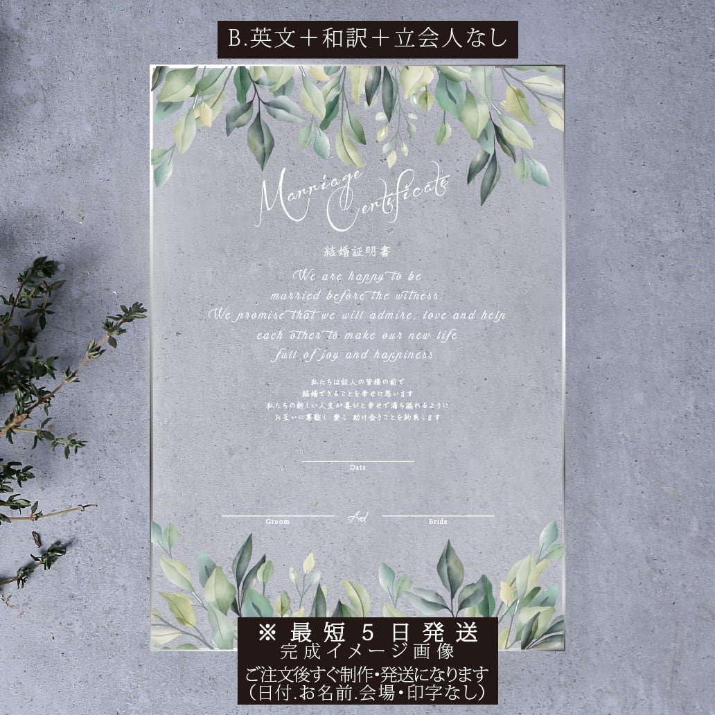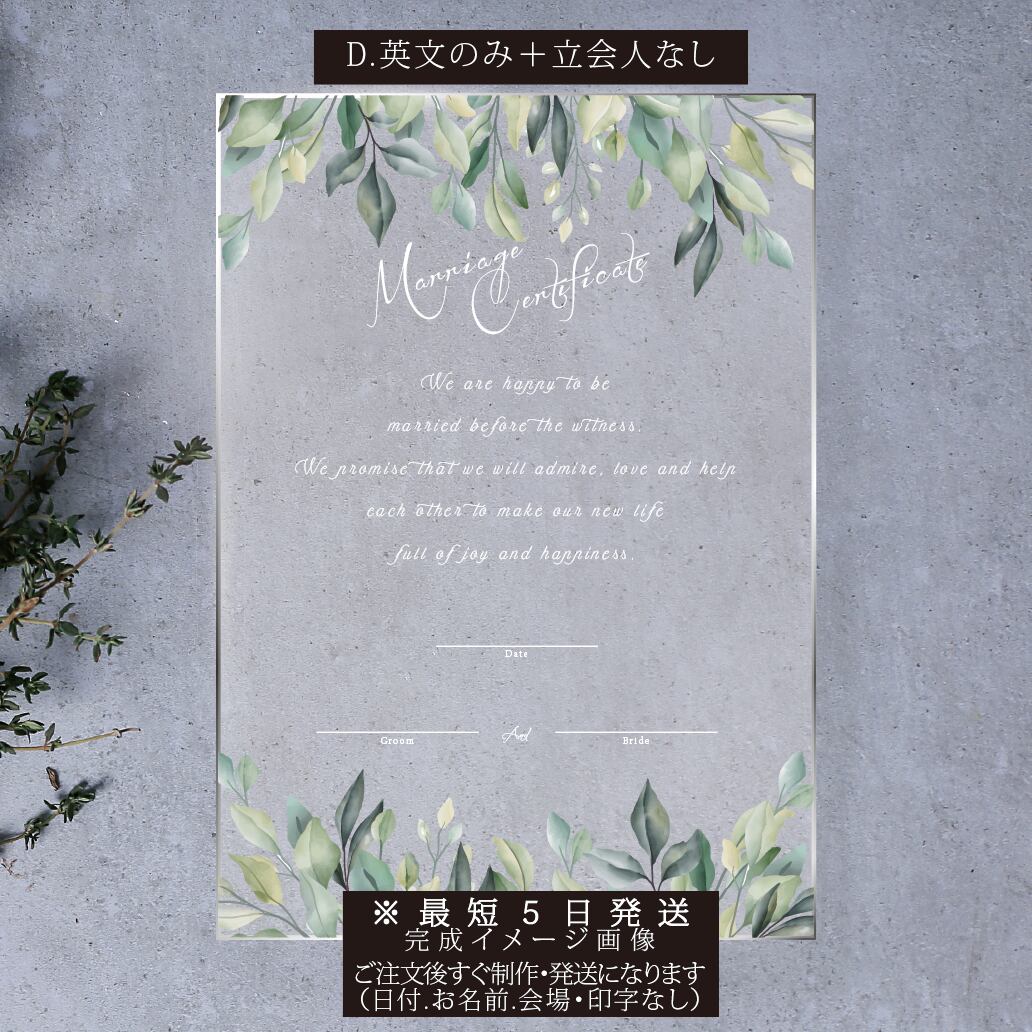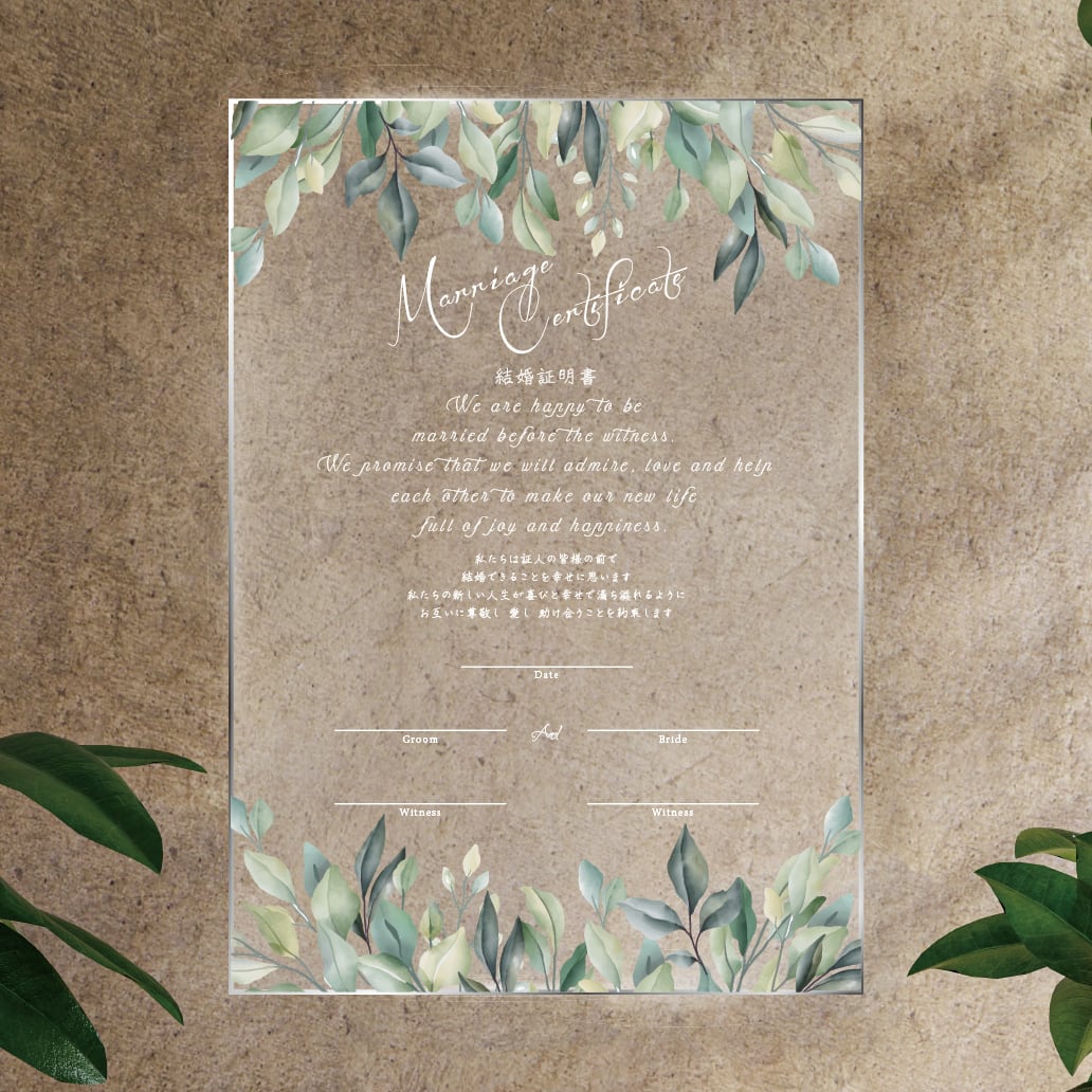 最短5日発送【人前式・教会式】結婚証明書 A4サイズ 誓いの言葉 ウェディング 送料無料 ナチュラル グリーン
